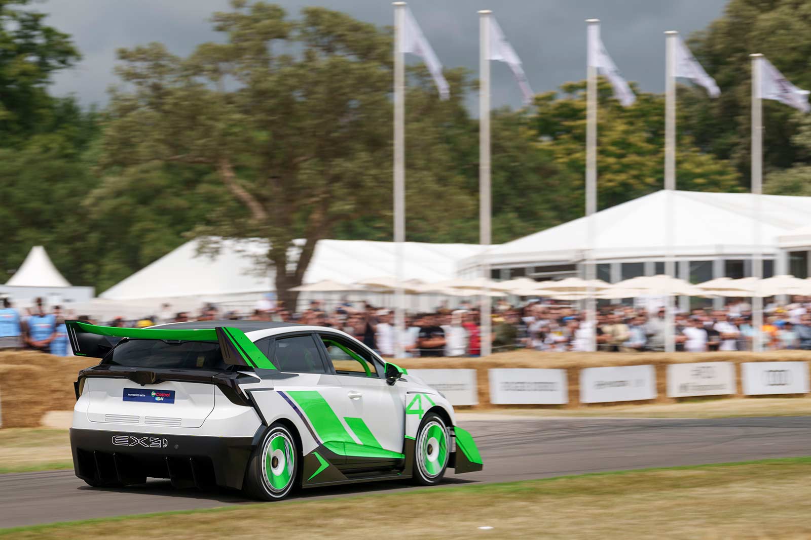 MG returned to the Goodwood Festival of Speed today with a high voltage display of electric- powered performance. There were three global debuts in one day from MG including the much-anticipated first running of the Cyberster roadster, the brand new MG4 EV XPOWER and the striking EX4 concept car which was designed by MG’s London design team just for Goodwood.