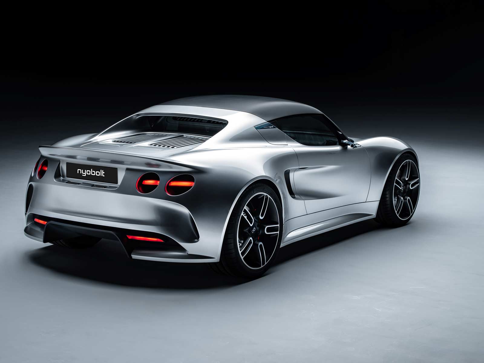 The result of this collaboration is the Nyobolt EV – a sports car with greater presence and exaggerated proportions. Sitting on 19” wheels all around, its low-slung body 100mm wider and 150mm longer than its inspiration, while maintaining an aggressive attitude and hunkered stance that’s reminiscent of the original. The wide front track quickly rolls into the body and back out again into muscular rear haunches with signature ‘duck tail’, creating an exquisite hourglass shape.