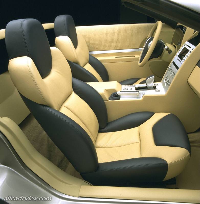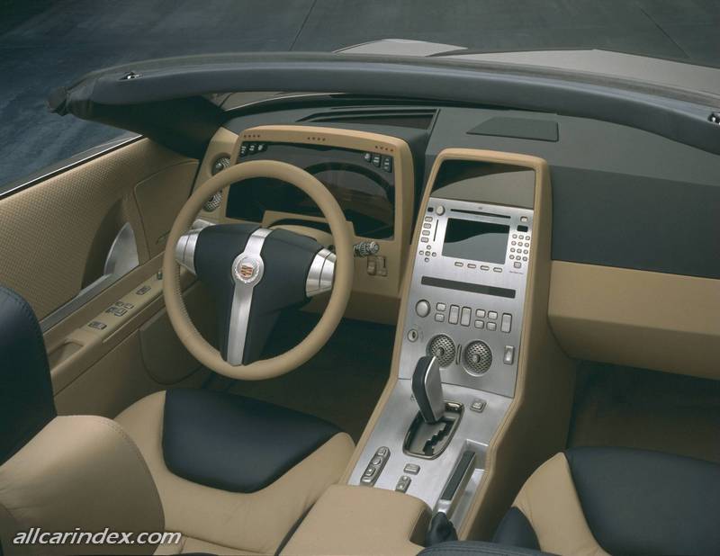 The instrument cluster is a further development of the one used on the Seville STS, with cold-cathode tube technology and revised graphics. The specific Evoq seats feature enhanced width in the seat area, extra support for the shoulder and back and a long cushion for added thigh support. The leather seats are a light oak with embossing and dark blue accents. Interior door panels are a light oak color, matching the light oak wool carpeting.