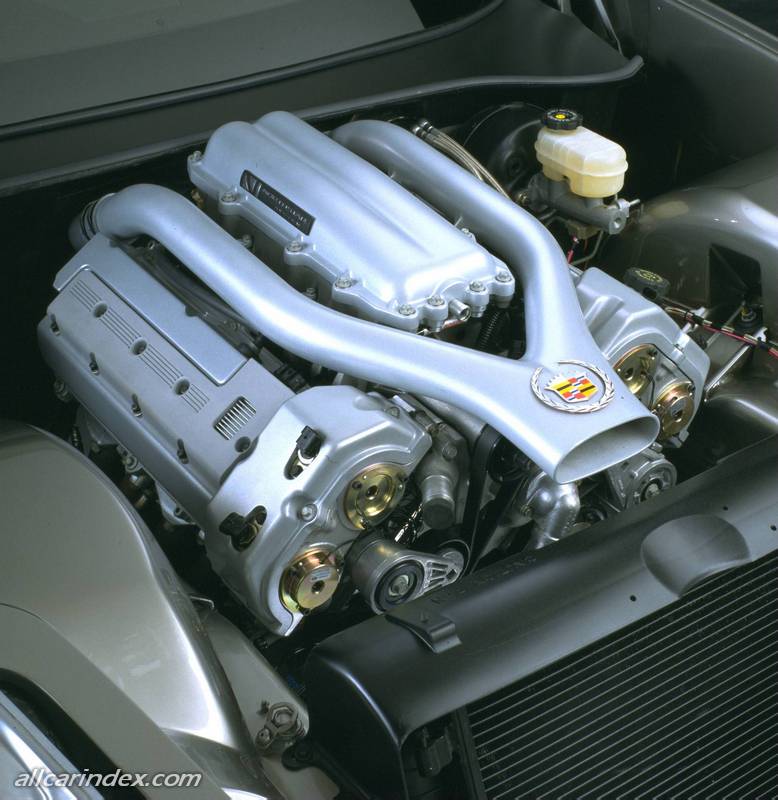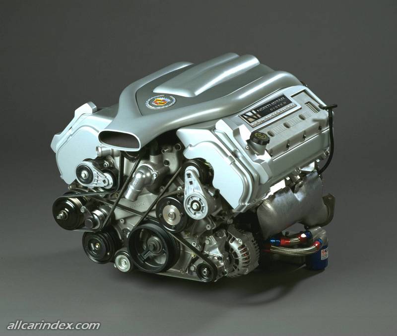 Evoq represents the first application of the widely acclaimed Cadillac Northstar V8 engine to a rear-wheel-drive configuration, and previews technology that will be seen on a next generation of the Northstar System. The new 4.2 liter all-aluminum V8 has been "crowned" by a fully integrated supercharger/intercooler unit, for which GM has a patent pending, and comes with four-camshaft continuously variable valve timing plus a new low-friction valvetrain. The result is "power on demand" over a broad torque band, providing excellent passing capability while at the same time offering impressive fuel economy under normal driving conditions. The engine produces 405 bhp (302 kW) at 6400 rpm and 385 lb.-ft. (522 Nm) of torque at 4000 rpm. The engine has been comprehensively upgraded for the increased power levels. These upgrades include a steel crankshaft, heavy duty pistons and connecting rods, iron inserted main bearing bulkheads, specific valves, and four-layer head gaskets.