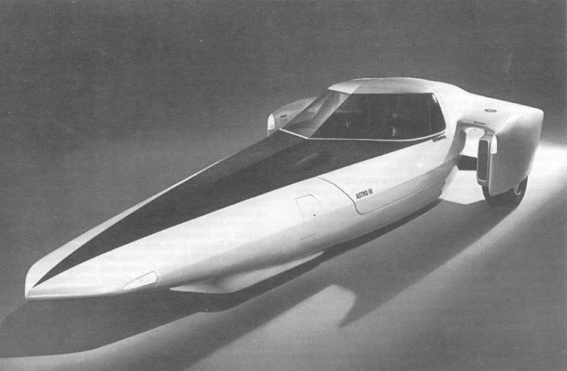 The 1969 Chevrolet Astro III was a sleek, two-passenger experimental car resembling an executive jet aircraft, even down to its tricycle-type wheel arrangement. It was envisioned as a high-performance vehicle suited for travel on restricted access or possibly systems-controlled interstate highways of the future.