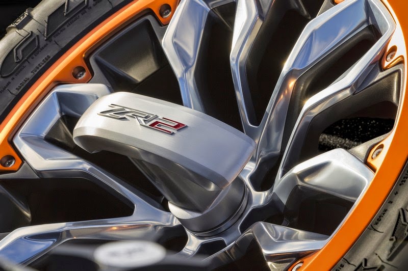 The Colorado ZR2 wears a concept Cyprus Green exterior color, with Henna Orange accents and custom ZR2 identification on the rear fenders, tailgate and grille.