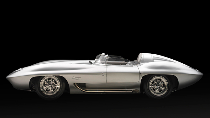 The Corvette Stingray was a privately funded concept car that formed a basis for the second (C2) generation Corvette Sting Ray. The Stingray racer-concept car was designed by Bill Mitchell, GM Vice President of styling, and Larry Shinoda in 1957. The basis of the Stingray was the 1957 Corvette SS, an engineering test mule chassis for the creation of an official Chevrolet race effort culminating with the 24 Hours of LeMans. Soon after its race debut, the Automobile Manufacturers Association (AMA) banned manufacturer-sponsored racing, and the SS had been relegated to test track duty. The Stingray exists today with a 327 cubic inch (5.4 L), fuel-injected V-8 of 375 hp (280 kW)