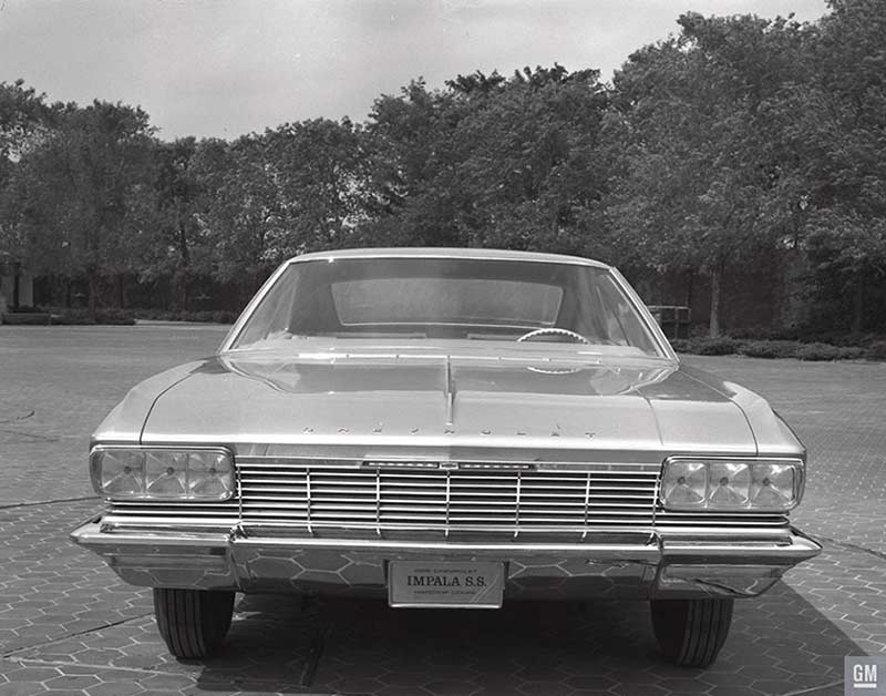 The Chevrolet Studio conducted a design review in the spring of 1963, unveiling their fiberglass model of the 1965 Impala Coupe. By this time, the general size and proportions of the vehicle had been finalized, while various alternatives were under consideration for other aspects. During the review, the Studio continued refining the front and rear end graphics of the 1965 Impala Coupe.