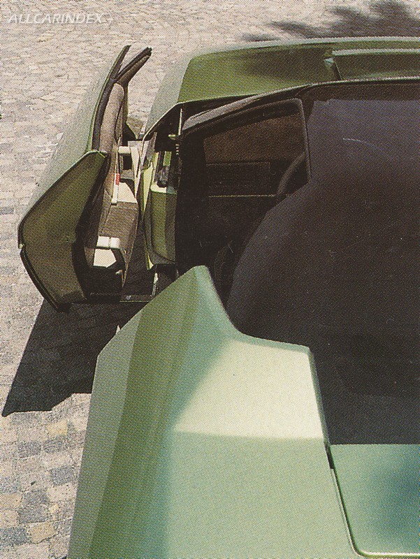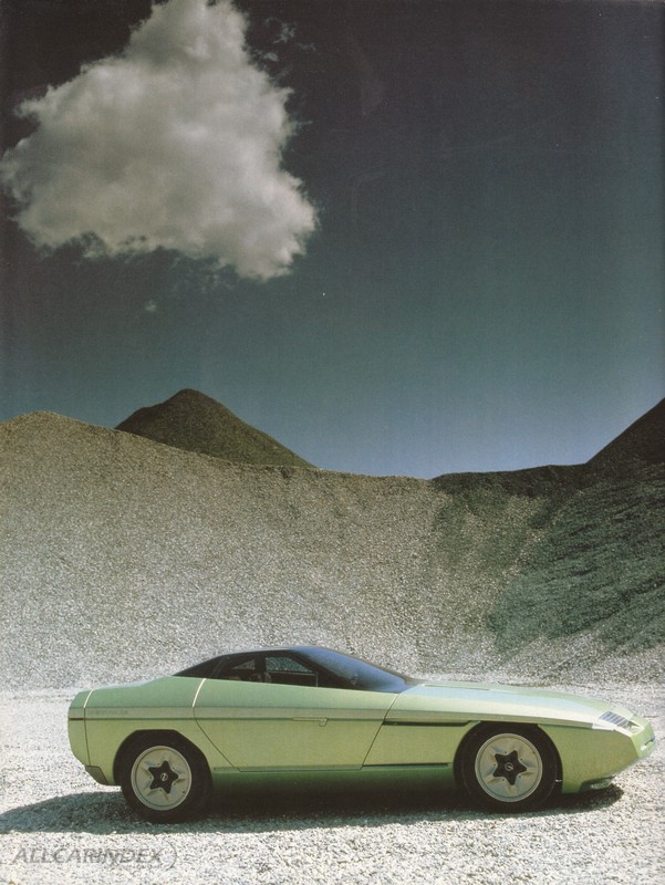 One of Nuccio Bertone's most stimulating ambitions was that of conquering the American market. In 1963 he had created the successful Testudo on the mechanics of the then very new Chevrolet Corvair, a revolutionary coupé which made him a focus for the attention of the international press and the American manufacturers. Twenty years later, Bertone began to explore the possibility of approaching the US market with the Ramarro, an exercise in applied technology around mass-produced mechanics. The prototype was created on the chassis of the well-known Chevrolet Corvette, and the underlying concept aimed to modify the layout of the mechanical components in order to make the most of the design quality. The radiator and air-conditioning were moved to the rear of the vehicle, and the doors opened by sliding forwards. The entirely glazed greenhouse was the final design touch which aimed to combine intentional aesthetics with the application of highly sophisticated technology. 33 cm shorter than the production Corvette, the Ramarro was judged to be an example of an industrial design of rare beauty.