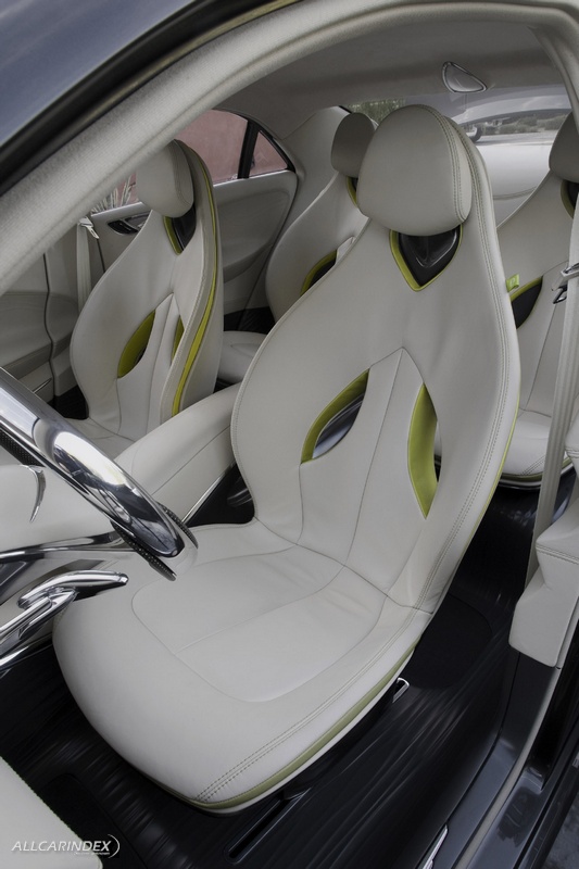 The emphasis on open space is a hallmark of Chrysler 200C EV concept vehicle. An aluminum appliqué dramatically sweeps from the center console, across the instrument panel and onto the passenger’s door. The first-row compartment strays from traditional 50/50 seating and has been cleverly designed to give the perception of a more spacious 60/60 seating space. The driver and passenger seats, thin in design with a focus on spinal support, are covered in Pearl chromium-free leather and trimmed with Leaf Green stitching, giving the interior a sporty and luxurious look. All four bucket seats can be heated or cooled with individual temperature controls.