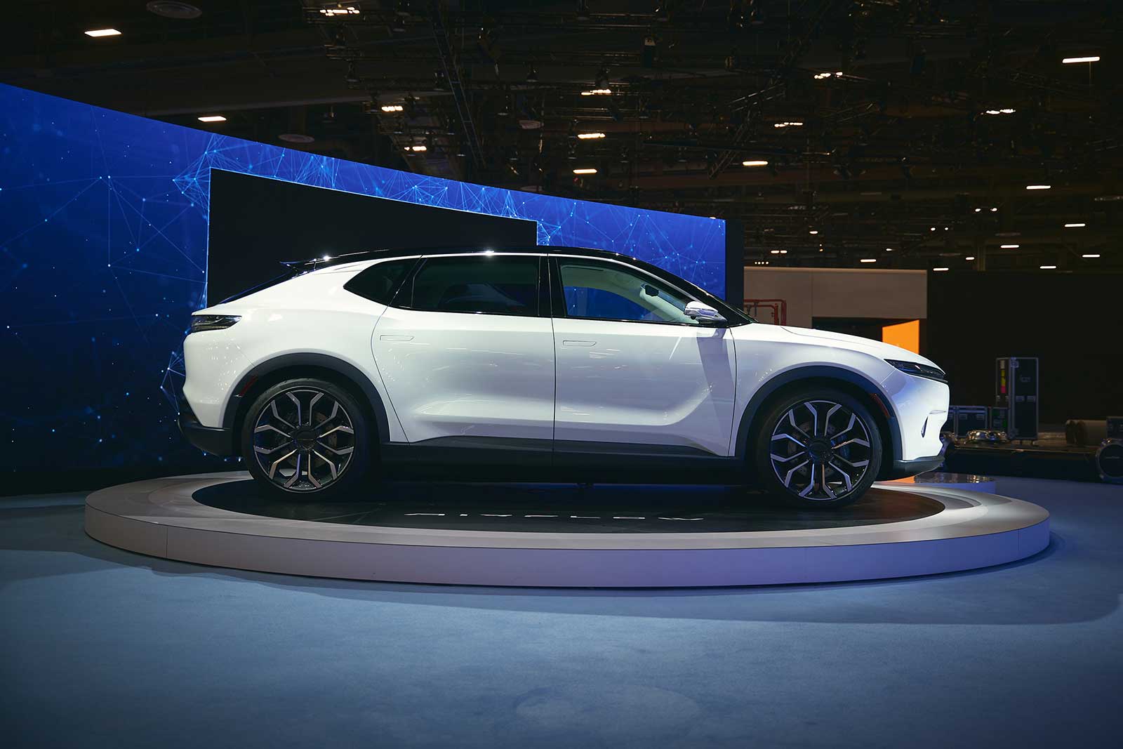The Airflow Concept features a dynamic design proportion, with a low ride height and streamlined, two-tone roof line that achieves an elegant yet athletic profile while increasing EV range. A long wheelbase and wide track, along with large 22-inch wheels and tires, are enhanced visually with Celestial Blue accent color cladding. The design elements work together to enable a dramatic stance and deliver excellent handling and performance dynamics.