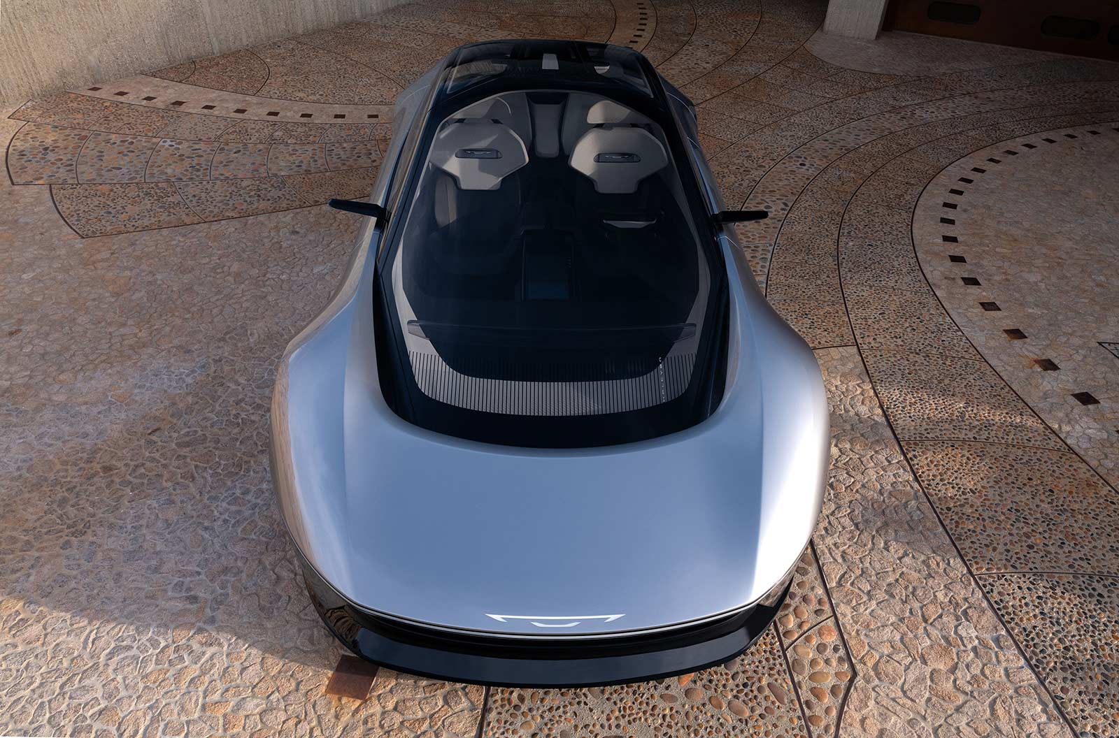 The sculpted cockpit is centered by a cross-car pillar-to-pillar transparent display, providing a forward-looking view of information while keeping eyes on the road. Complementing the display is a stowable 15.6-inch console screen that can be rotated for either portrait or landscape orientation and can assist in start-up and quick access to information. The displays can be fully controlled by voice recognition commands, diminishing the need for driver input.