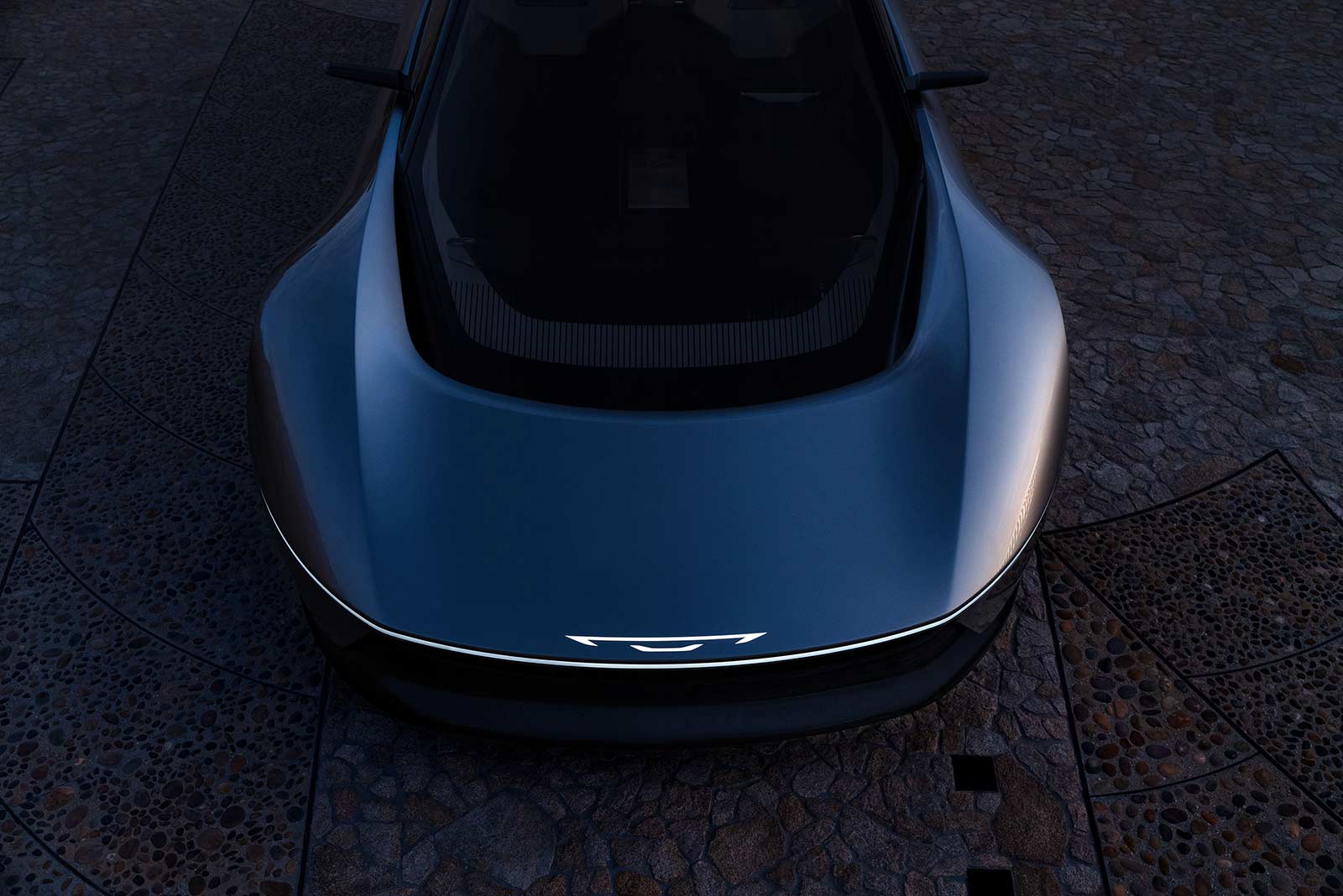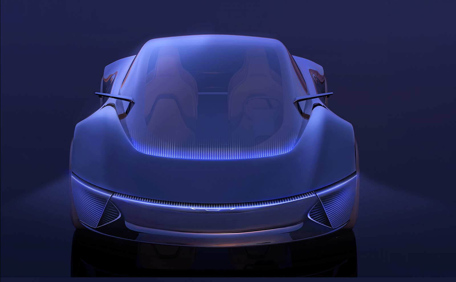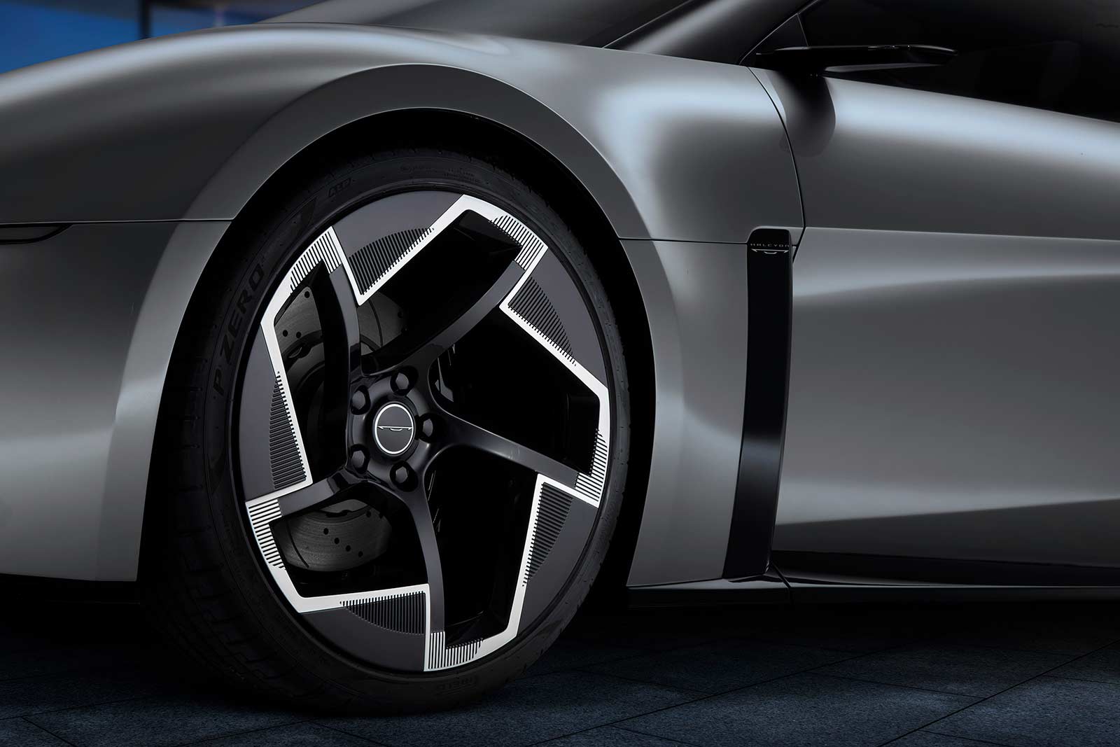 - Halcyon Concept’s dramatic proportions create a low-to-the-ground profile with a front air blade aerodynamic pass-through that enhances performance and all-important BEV range capability