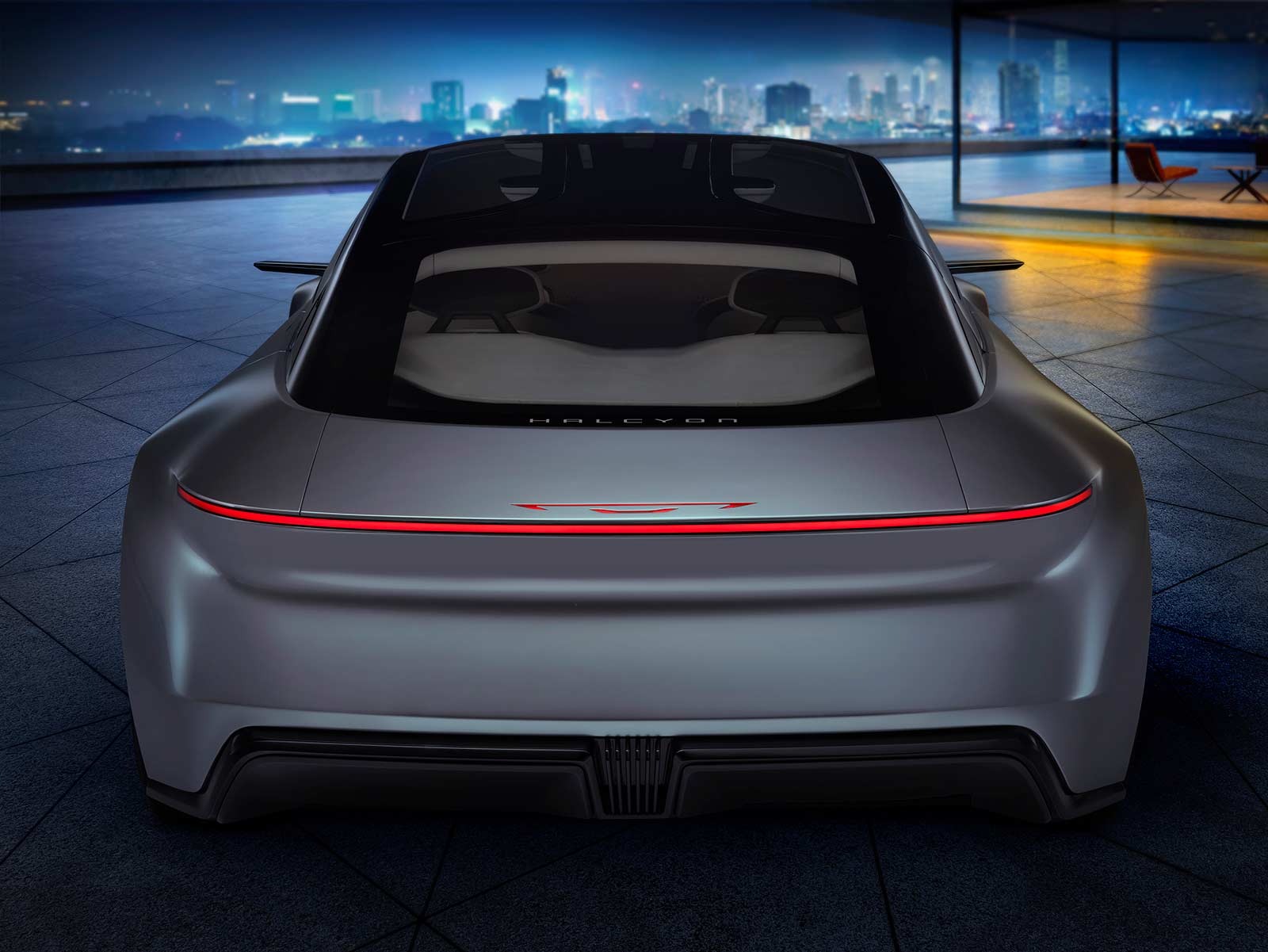 - Halcyon Concept’s combination of seamless technology and battery-electric performance are harmoniously complemented by a pure, streamlined exterior design statement that balances aerodynamic and sculptural elements