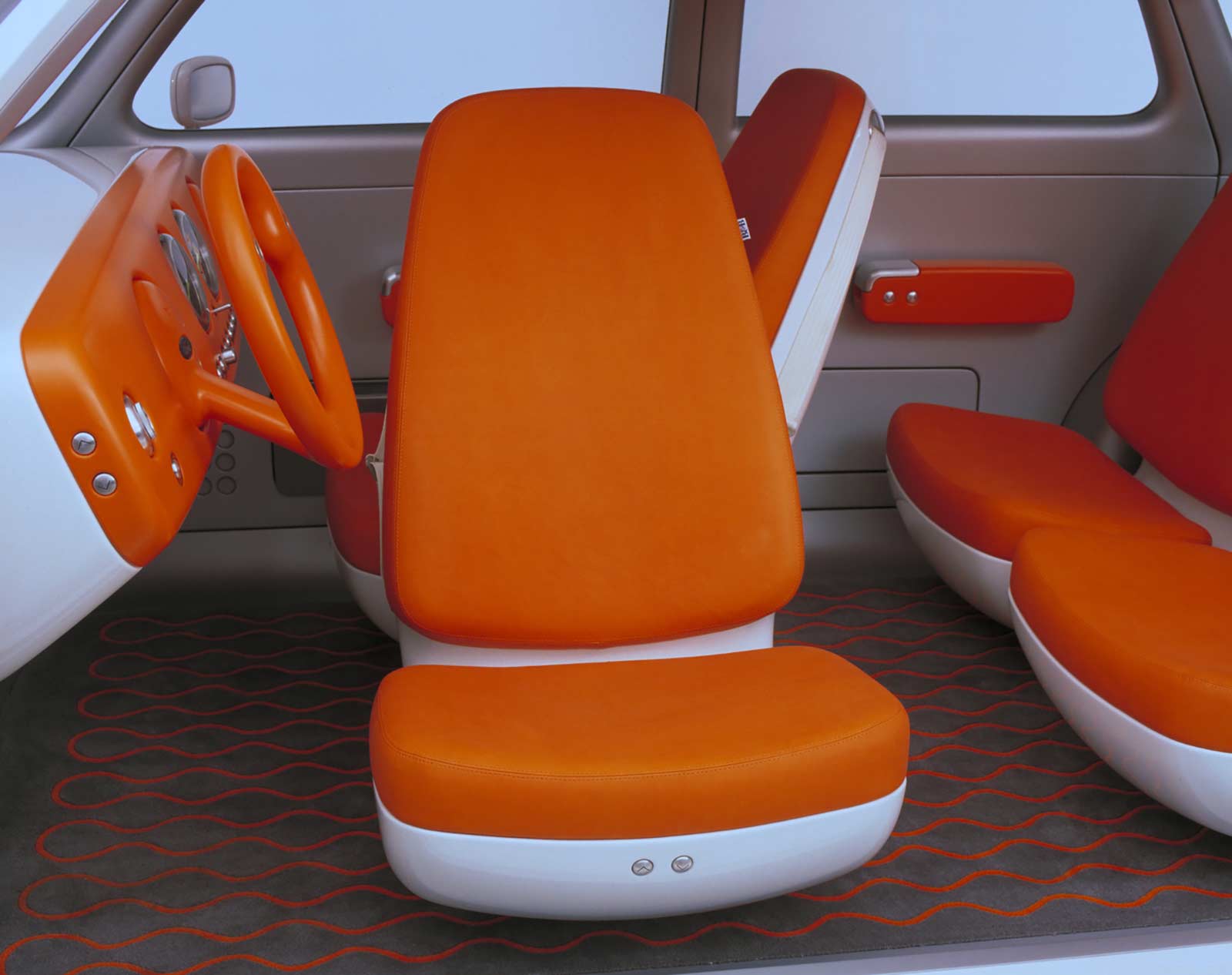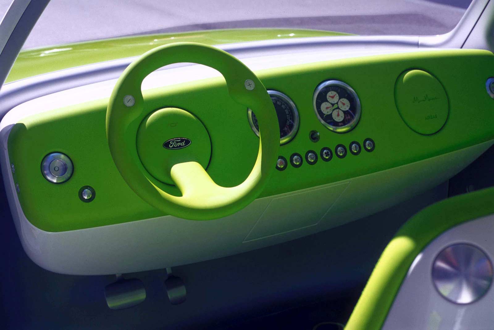 into all vertical surfaces. The cleverly mounted instrument panel and seats appear to "float" in the interior, heightening the sensation of space. The front seats swivel through 90 degrees to facilitate entry and egress. Every element of the Ford 021C has been designed by Marc Newson, apart from the mechanical and electrical systems. Newson even designed the instrument panel graphics, all the switches, the wheels and the tread on the specially produced Pirelli tyres. "It's easily the most comprehensive design job I've ever done," he said. "It was like designing 500 products at once." This extraordinary attention to detail gives the Ford 021C a coherence rarely seen in concept vehicles. Newson, who owns a classic Aston Martin DB4 and has designed everything from glassware to furniture to restaurant interiors, said he wanted to design a car that wasn't intimidating. "I wanted to create a car that was light, likeable and fun," he said. "But more importantly, I wanted the car to connect on an emotional level. "Ask children to draw a car and they'll draw something like this, so in many ways the 021C is a familiar and comfortable object," Newson said. "But it doesn't use many typical automotive design cues, and while it does incorporate some interesting technology, it's not technology used simply for the sake of it."