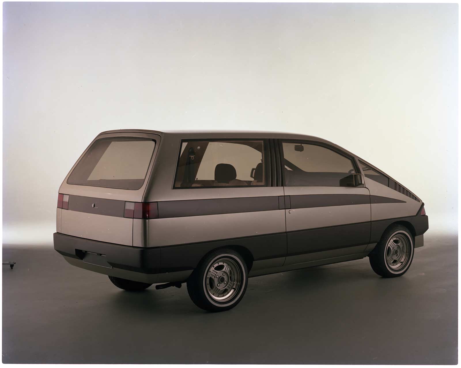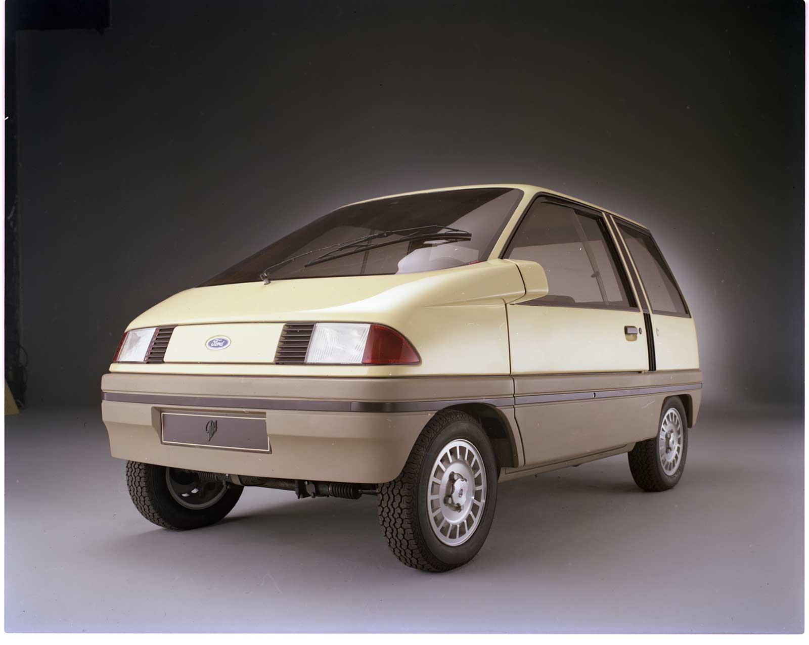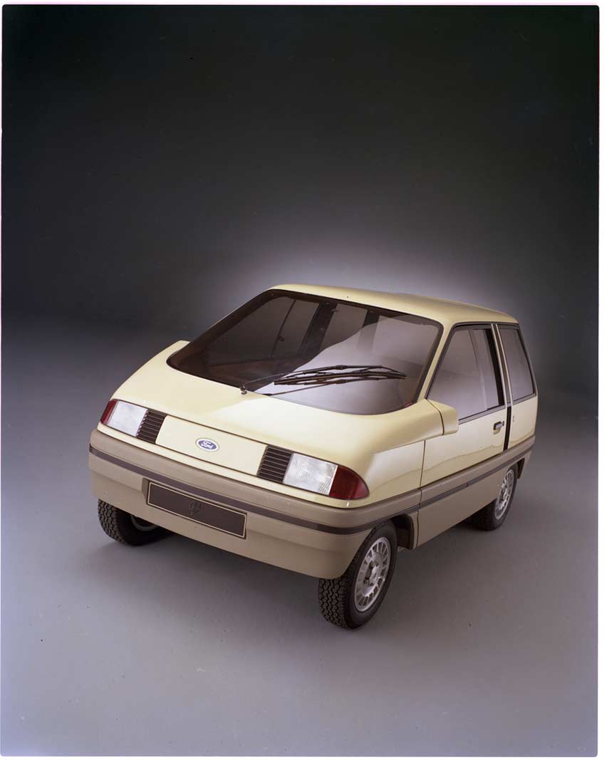 The features of the aerodynamically-styled concept vehicle, the Aerovan, are checked out by Constable Steve Kemley of the Toronto Police mounted unit during the Aerovan's one-day appearance at the Canadian National Exhibition. The seven-passenger station wagon/van, designed by the Ghia studios in Italy, was a surprise attraction at the exhibition's Automotive Day observance. Al Weber of the Design Center staff in Dearborn was on hand to field the questions from the hundreds of fair-goers who stopped by. Most frequently asked - "When is it going to be for sale?" The highly-efficient Aerovan is designed for an Escort platform and power train.