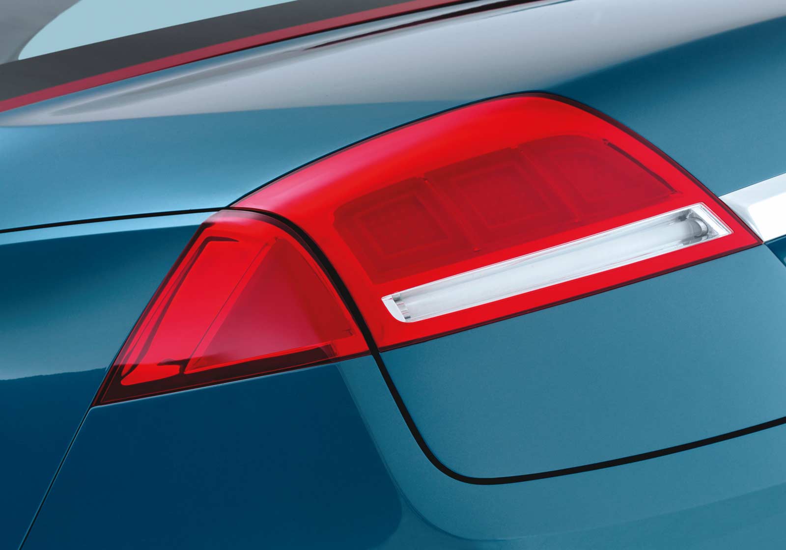 Lower aluminium touches continue at the front and rear of the vehicle, giving visual emphasis to front air ducts and rear exhaust outlets and adding a bold strip along the edge of the bootlid between the tail lamps.