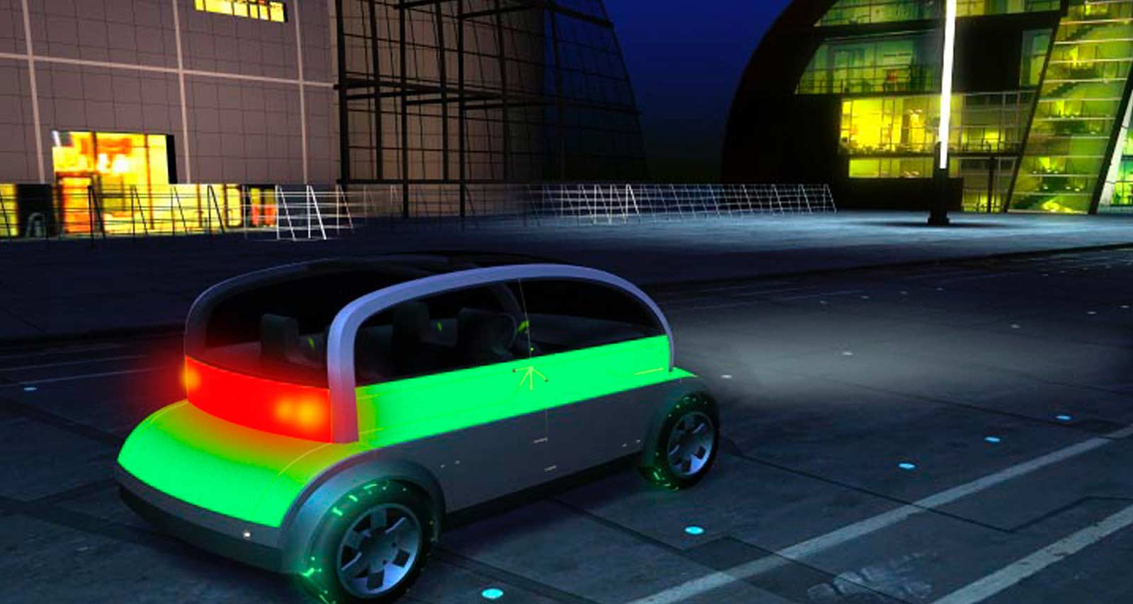 - Safety: 60 percent of accidents occur at intersections at night. Illuminated by translucent panels and LED lights, GloCar is more visible