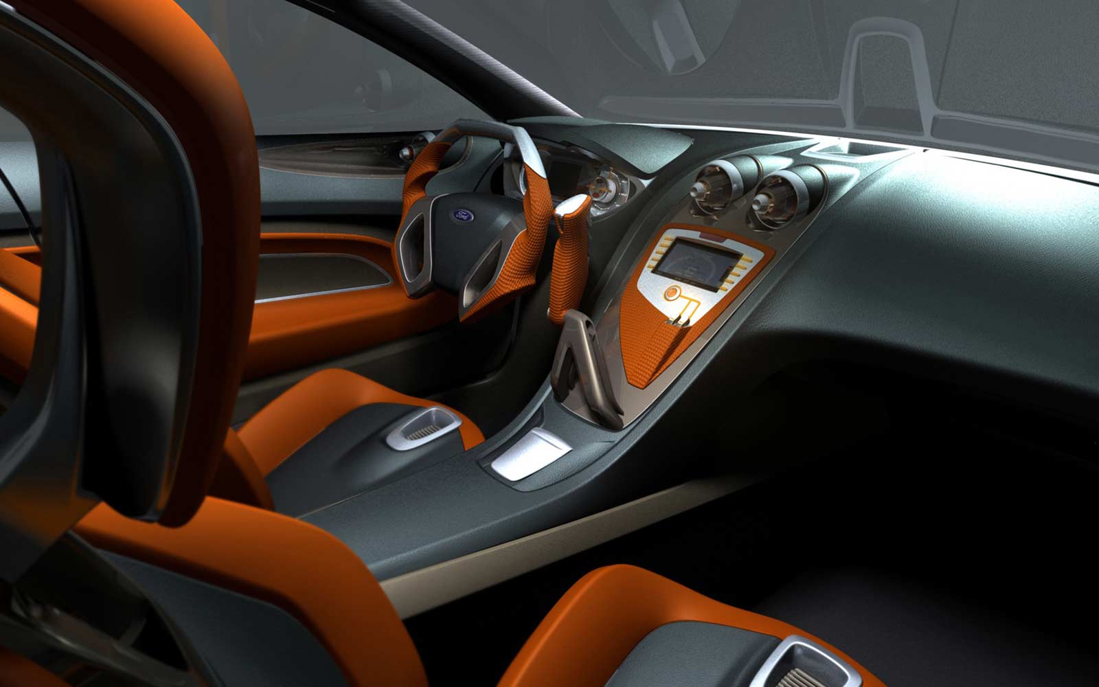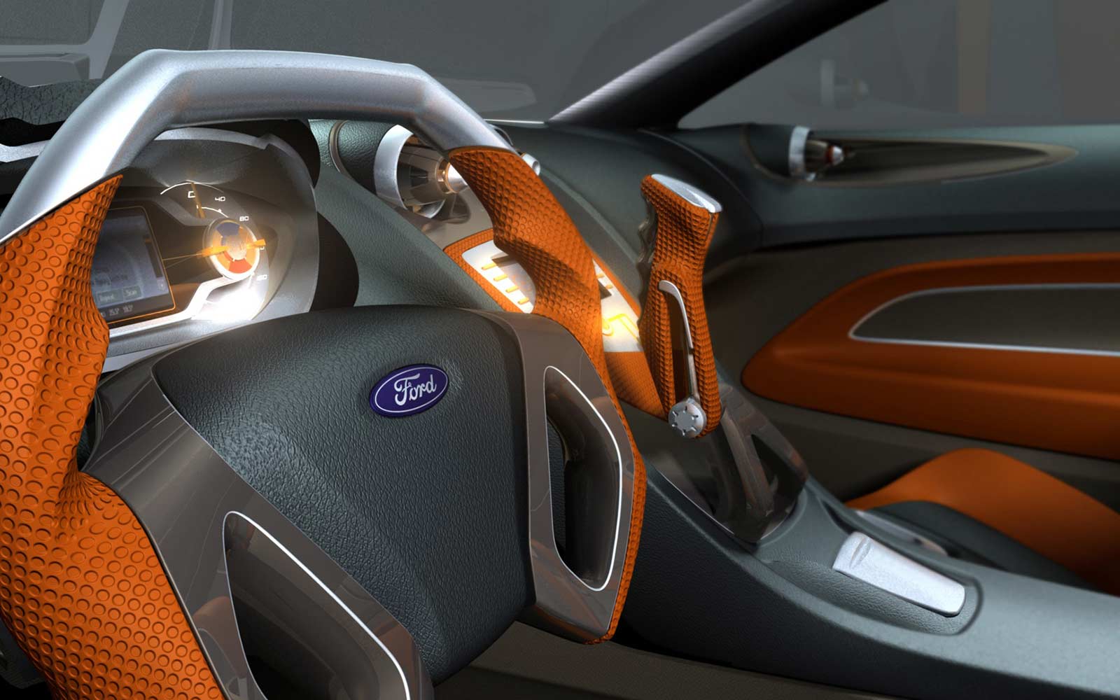 Another example of this approach is in the sequential gear shifter inspired by the Focus World Rally Car, and located just a hand span from the steering wheel. Beautifully crafted from solid aluminium and finished in a unique anodised soft warm brown-grey with orange leather, it embodies all the themes running through the interior - contemporary craftsmanship and high quality materials. The starter button is mounted beneath a flip lid on top of the shifter.