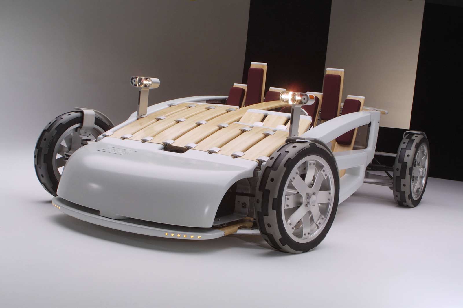 Environmental responsibility plays a key role in the MA. Bamboo, a regenerative grass that grows back every five years, figures prominently in the open-air design. Only a few parts are painted. There are no hydraulic fluids and none of the industrial adhesives typically used in automobiles, making the MA more than 96 percent recyclable. The MA concept uses a zero-emission, low-speed electric engine that has virtually no environmental impact. However, the car could also be outfitted with a small conventional gasoline engine.
