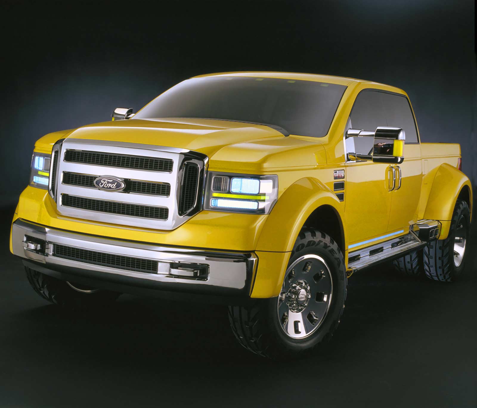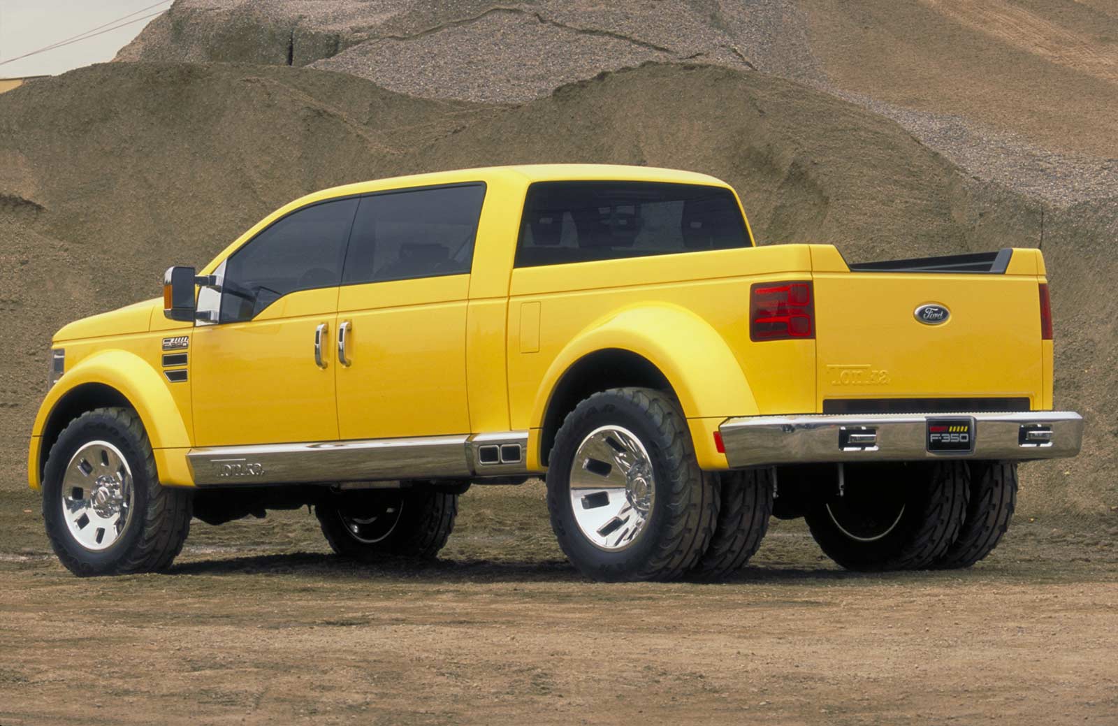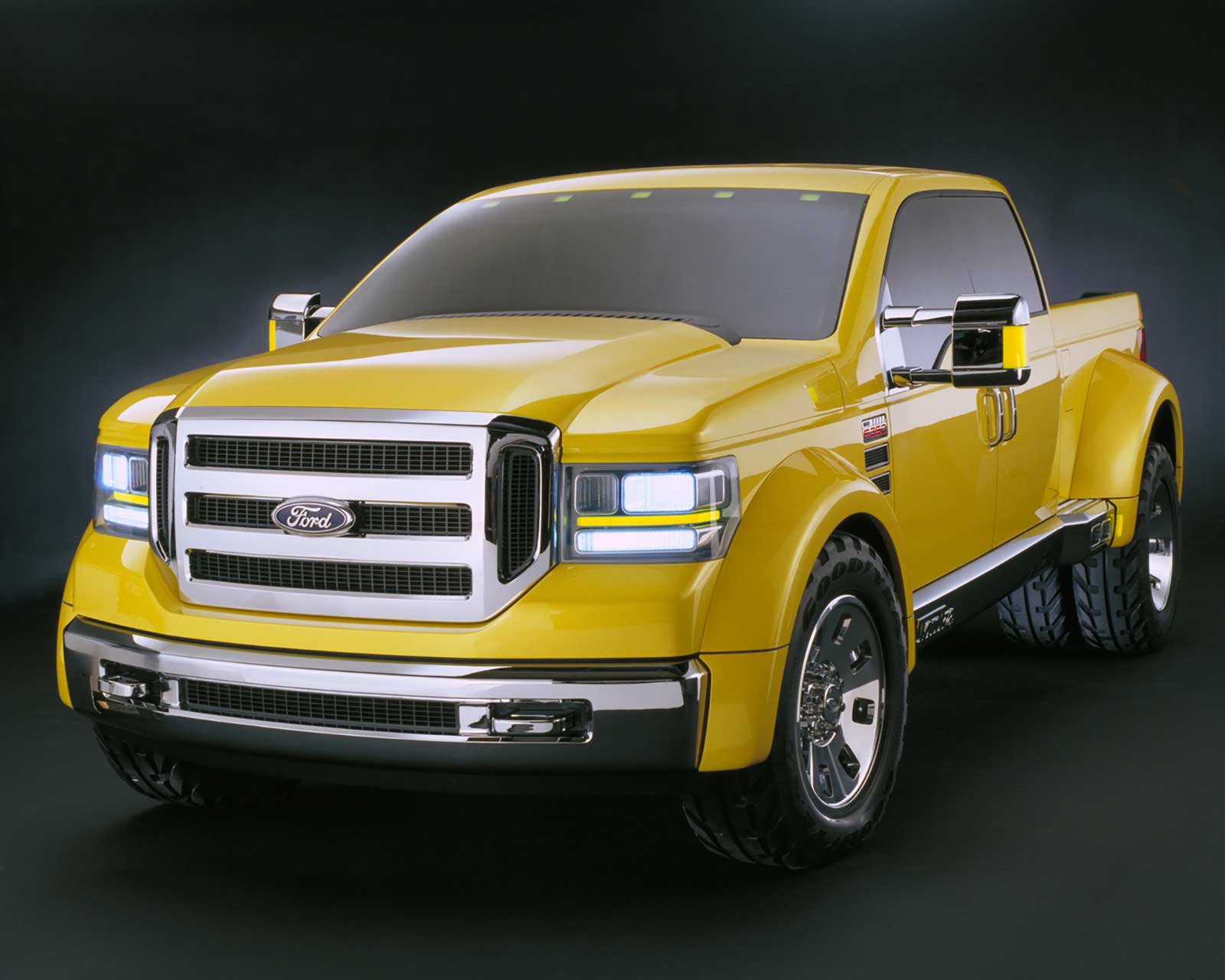 DETROIT, Jan. 6, 2002 – Designed to draw attention and demonstrate future design possibilities for Ford’s F-Series line of best-selling trucks, the Mighty F-350 TONKA concept is a brawny vehicle true to its "Built Ford Tough" heritage. Its striking yellow hue, a tribute to the traditional TONKA® palette, is as eye-catching as its impressive size and distinctive styling.