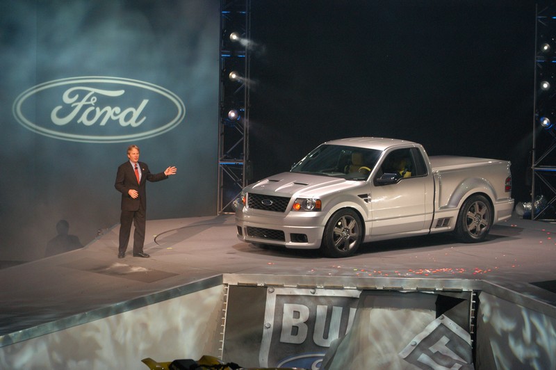 Ford’s bold vision for a third-generation SVT F-150 Lightning sport truck emerged today from a powerful new-product cloudburst at the 2003 North American International Auto Show. The SVT Lightning concept was a surprise during Ford’s unveiling of the all-new 2004 F-150. Launching a “Whole New Era of Built Ford Tough,” the new F-150 is an all-new full-size pickup architecture designed for more power, refinement and unprecedented driving dynamics capability. It is the star of Ford Motor Company’s biggest-ever wave of new-product introductions at the dawn of its Centennial year. “We are excited about the new F-150, because it will provide an outstanding platform for the next-generation Lightning,” says Tom Scarpello, marketing and sales manager for Ford Special Vehicle Team (SVT). “The SVT F-150 Lightning concept hints at what we could do with Lightning and sends a signal that we don’t intend to give up our dominance of the sport truck market.” The SVT F-150 Lightning concept features a six-speed manual transmission, independent rear suspension and a 500-horsepower supercharged V-8. It is a powerful combination aimed at extending SVT Lightning’s supremacy into the future. Since it was introduced in 1993, the Ford SVT F-150 Lightning has been the undisputed sport truck king, making a name for itself as the “World’s Fastest Production Pickup.” Ten years later, competitors are finally bringing Lightning imitators to market. John Coletti, director, SVT Programs, welcomes the challenge. “It will be nice to finally have a little cross-town rivalry,” Coletti said. “But we have no intention of being overshadowed on our home turf. The SVT Lightning Concept showcases technology we’re developing to meet the competition head-on.”