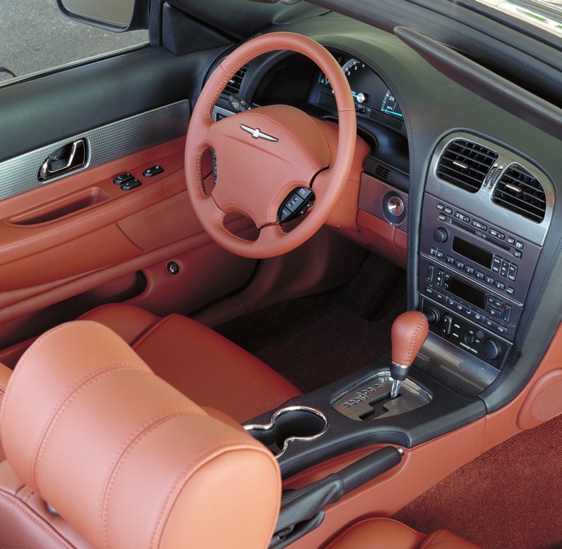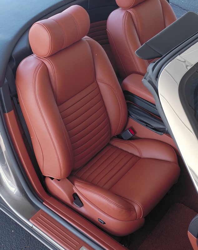 The bucket seats are covered in sienna leather and feature plush side bolsters and adjustable head restraints. The seating surfaces are covered with perforated sienna leather with the familiar Thunderbird tuck-and-roll sew style.