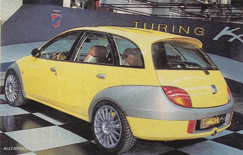 The Ghia Turing Ka concept is a unique 4-door hatchback wagon, which was constructed on a standard Ka chassis which was lengthened a number of inches to provide plenty of interior space for the impedimenta of outdoor activities plus a roof rack for overflow. Big one-piece OZ cast alloy wheels have low profile 215/40ZR-17 Pirelli P7000 tires. Typical of New Age designs, Ghia Turing Ka concept's nose and tail have matte silver accent panels that emphasize its brilliant yellow paint. The materials and textures employed by Ghia in creating and presenting Ghia Turing Ka concept's interior recall Taru Lahti's dramatic 1992 Ghia Focus concept. It features body color metal to accent its luxurious leather. The small steering wheel has a thick wooden rim. Interior metal trim on the instrument panel, dashboard and console is naturally finished. Even the roof rack was attended to and this has been finished with an engine turned style. This concept also comes equipped with a matching set of luggage.
