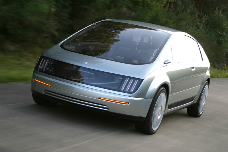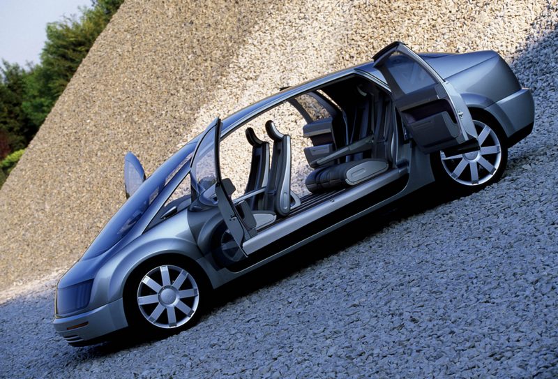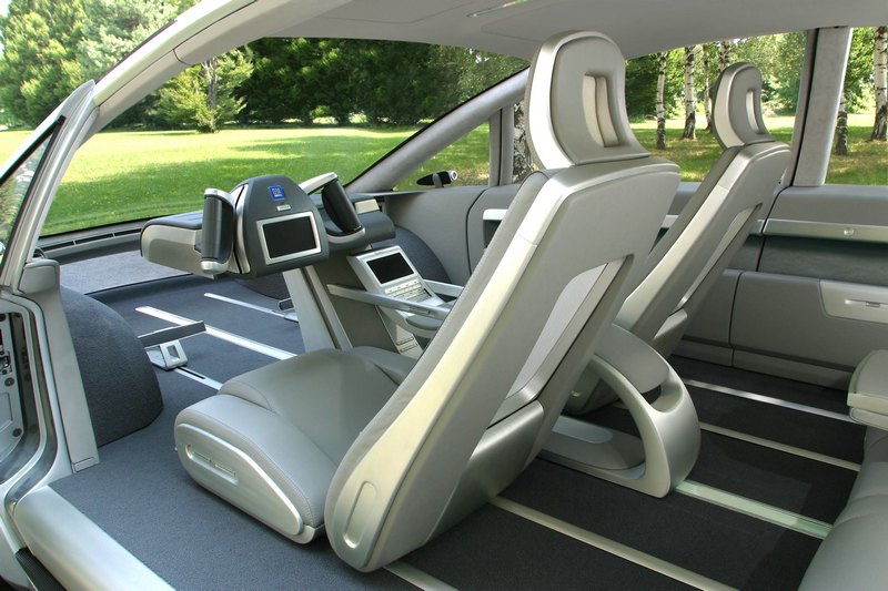 To show off this radically new architecture, the front and rear panels are made of transparent glass. Onlookers can see through the car from front to rear; the liberal use of glass and the absence of a hood also provide a greater visual command of the road for the driver. To reinforce this effect even the seat backs are open. There is no B-pillar between the front and rear doors. Drivers and passengers have greatly enhanced legroom.