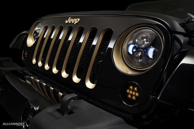 The Jeep Wrangler Dragon design concept is based on a China-market Wrangler Unlimited Rubicon painted black with a black body-color three-piece hard top. From there, the designers incorporated numerous bronze-gold details – a color associated with the dragon. These bronze-gold details can be found inside the front grille slats, headlamp surrounds and Jeep badging front and rear.