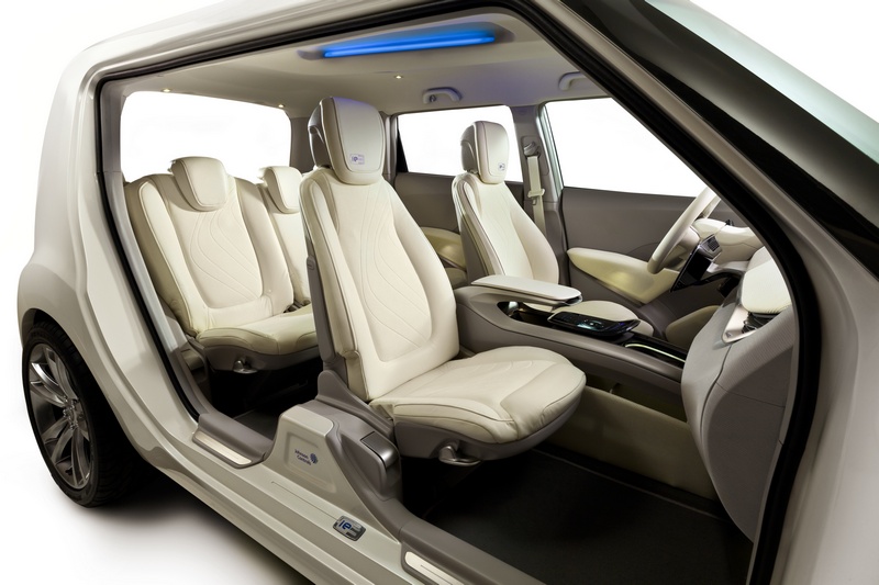 EV Battery System. Innovative low-profile battery system places lithium-ion prismatic cells beneath the vehicle floor, resulting in a flat floor with increased usable interior space.