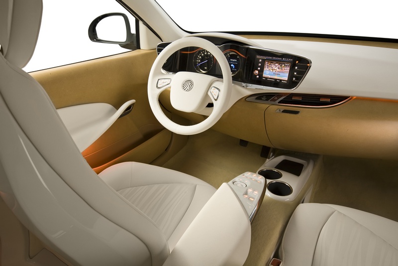 The extended cluster provides an intuitive way to personalize and regulate electronic information. The display to the right of the cluster pair makes menu selection a simple touch and flick. This information transfers to the nearby digital cluster to reprioritize information based on the driver’s hierarchy of needs. The connection is completed as the digital and the analog clusters interact. Close by, the seat-wing provides the most often used controls for HVAC and music, all within easy reach of both the driver and passenger.