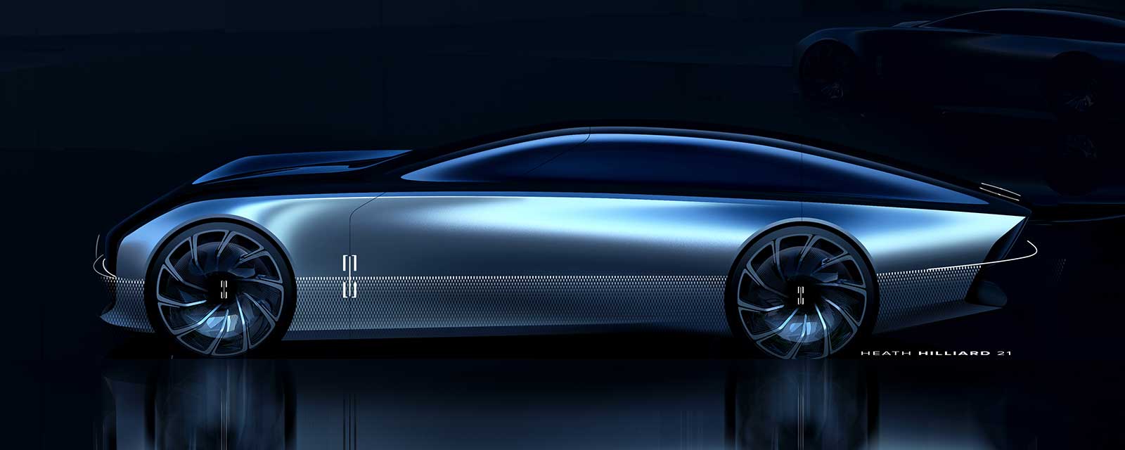 Using the area no longer occupied by a gas engine, a front trunk allows for ample storage, expanding the feeling of spaciousness inside. With electro-chromatic glass that changes from transparent to opaque, the front trunk is instantly recognizable, allowing light in when the vehicle is in motion and darkening to hide stored valuables when parked. Under the front trunk, illuminated first-row floors flow uninterrupted into the interior, creating an airy, open cabin.