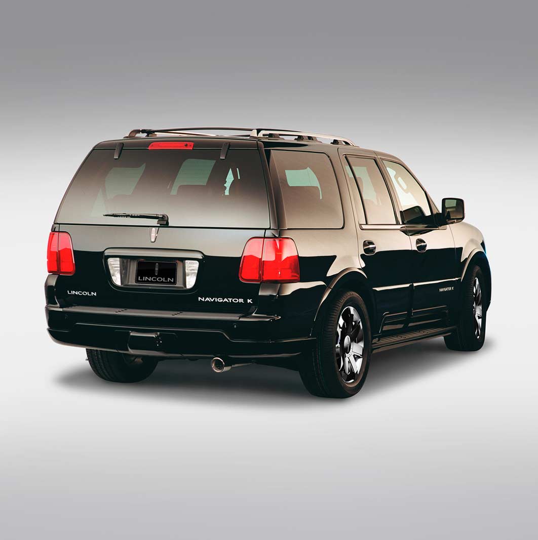 The Navigator K concept started as a 2003 Navigator “Ultimate” with exclusive features including power-deployable running boards, a power rear liftgate, a power folding third row seat and high-intensity discharge headlamps.