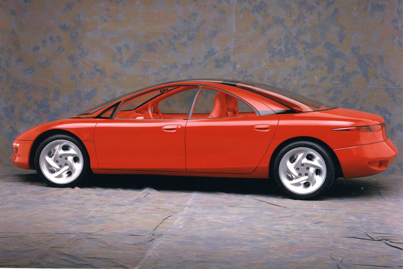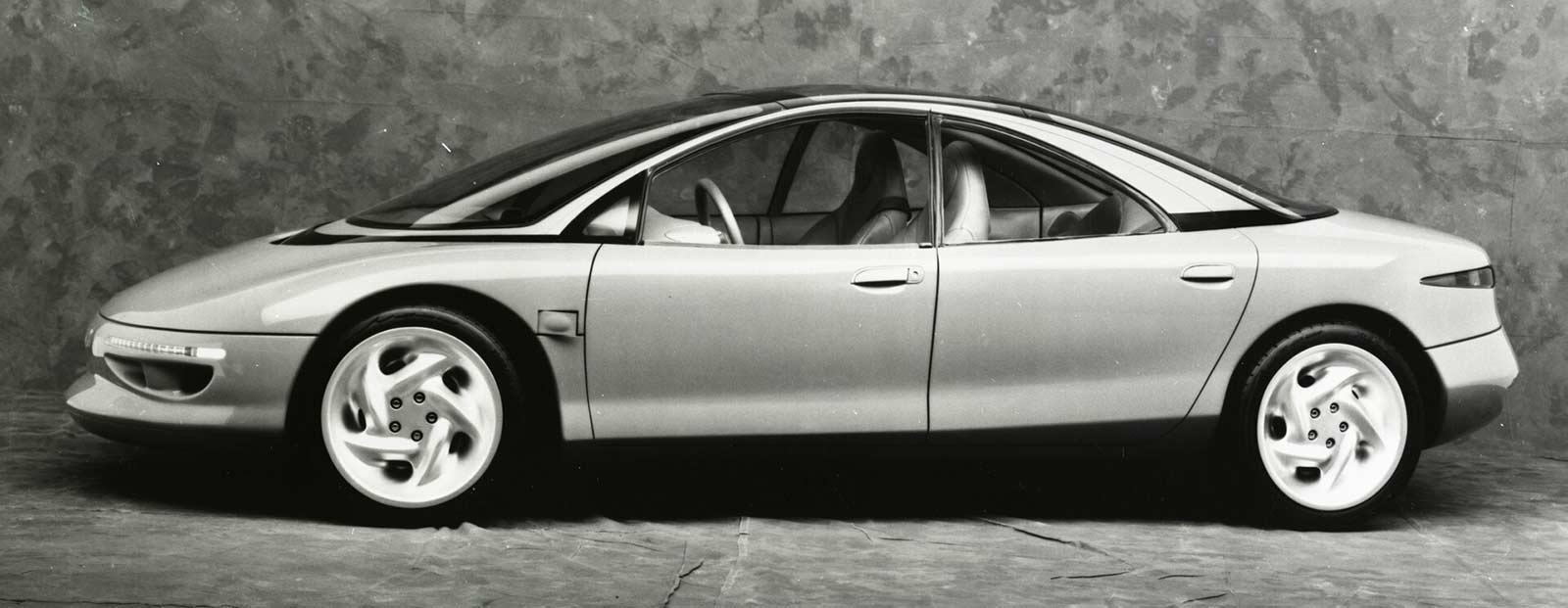 Also adding to the sleek design is a new light source development which utilizes fiberoptics for headlamps, taillamps and instrument panel lighting. This new technology provides taillamps with even lighting, eliminating hot spots. The car's sleek lines and aerodynamic efficiency are uncluttered by the traditional side-view mirrors; instead a rear-view television provides, information up front to the driver. Two color monitors are located beneath the windshield at each end of the instrument panel.