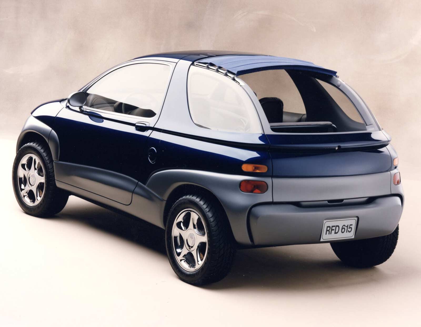 The rear quarter glass and backlight are removable for open-air ventilation in pleasant weather. An "action fabric", which takes its cues from the fun, colour-keyed fabrics of outdoor equipment, covers the rear section of the roof and can be slid forward to open even more of the interior to the outdoors.