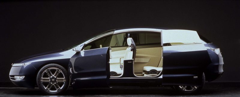 The Oldsmobile Profile was a 2000 concept vehicle. The Profile was a crossover SUV, with rear sliding doors and 5-passenger seating. The Profile was came with a supercharged 3.5L V6 engine with 250 horsepower, all-wheel drive, and traction control. The gear selector was a dash mounted rotary knob, freeing up the console for storage. The transmission could be shifted manually by using steering wheel mounted buttons. A "Smart Card" keyless ignition system performed all personal driver adjustments including seat, radio, mirror and steering wheel when activated by the driver. Along with many other innovative features, was hands-free phone communication, internet, on-board vehicle diagnostics and a DVD entertainment system with headrest displays for rear seat passengers.