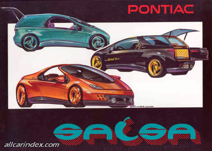 The 1992 Pontiac Salsa concept vehicle was designed in GM’s Advanced Concept Center in Southern California. This vehicle was able to transform from an all-weather, five-seat hatchback to a five-seat convertible or a two-seat panel delivery truck. Each module has a number of potential spin-offs.
