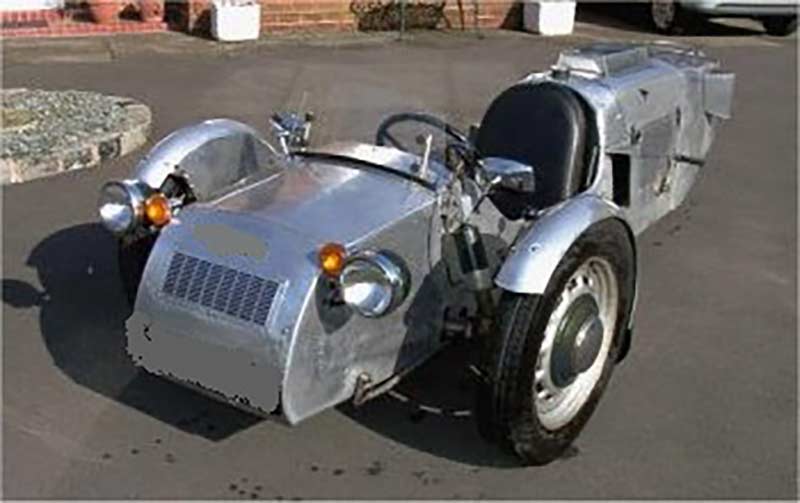 The Howcette was a custom-built one-seater vehicle created by Bob Howard in 1968. Crafted with a lightweight aluminum body, it was a striking blend of motorcycle and car engineering. Originally powered by a water-cooled 500cc Velocette MAC engine, Howard later upgraded it to a 500cc Venom engine during the 1970s or 1980s. The front-end mechanics came from an early 1950s Ford Popular, giving the vehicle a unique handling experience—just one half-turn of the steering wheel would take it from lock to lock.