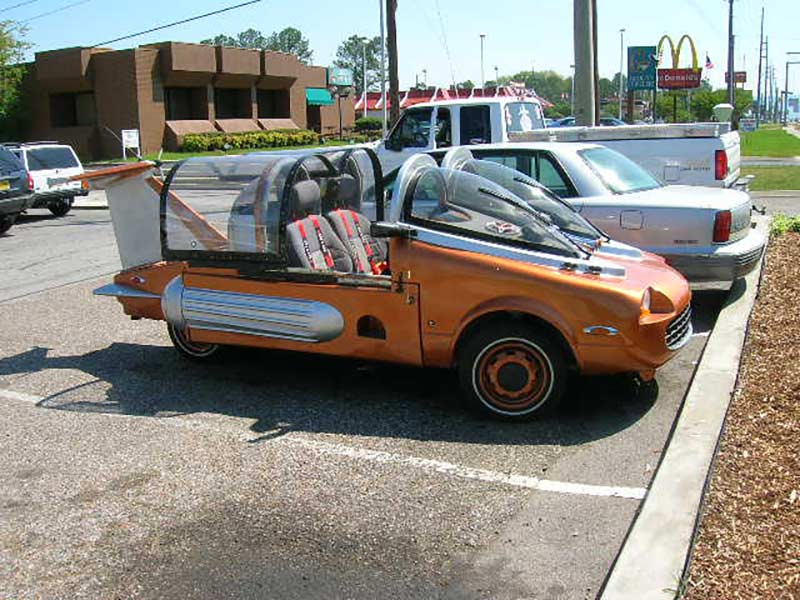 The car was once adorned with 63 junkyard horns, bells, whistles, and even had a bubble machine. Its distinctive twin canopies were said to come from Talon T-38 trainer jets. Known for his inventive creations, Don Schaper quickly became a local sensation, with TV stations and crowds following him and his unique art cars.