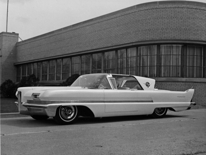 Painted in a mesmerizing pearlescent white, the Packard Predictor was a 2-door hardtop that exuded modernity from every angle. Its hidden headlights, wraparound and wrap-over windshield, retractable roof panels, see-through tail fins, and exhaust ports in the rear bumper all added to its high-tech allure.
