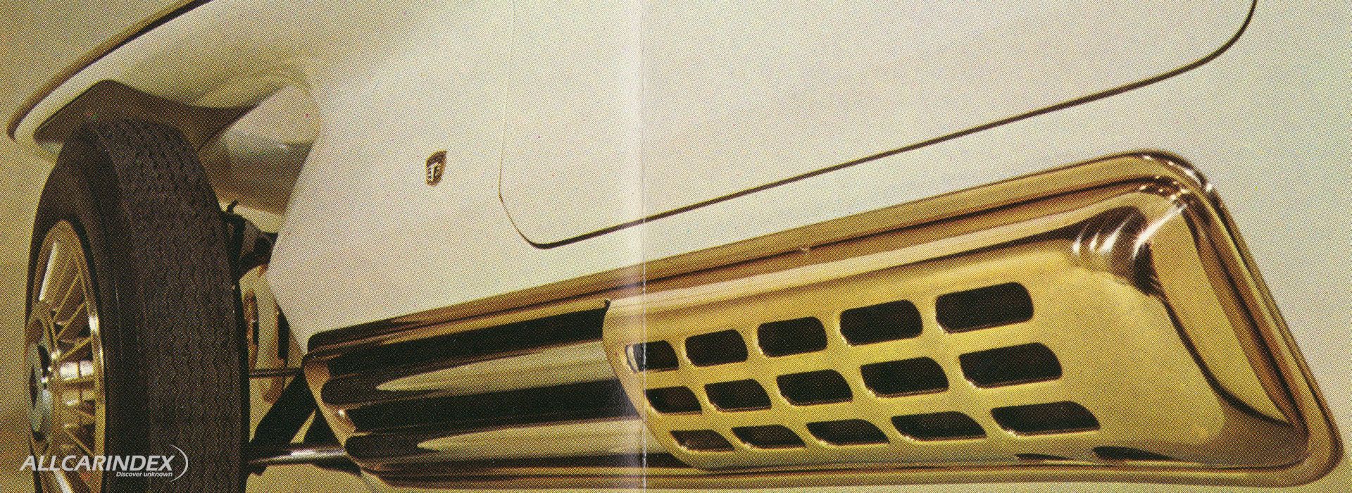 bronze alloy, and all are attached to the body with conventional fasteners. The exhaust shield, which guards the chrome-plated pipe, is also of silicon bronze. The taillights are , recessed into scooped-out sections of the rear fenders and framed in brass concaves whose reflective qualities enhance the effectiveness of the lights.