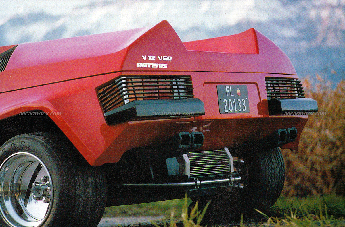 The Liechtenstein V12 engine was coupled with a 5- or 6-speed gearbox allowing acceleration between 3.4 and 5.1 seconds - depending on the electronic control. Artemis had front 10-inch wide rims with 285/40 tires while rear rims were 13-inches wide with 345/35.
