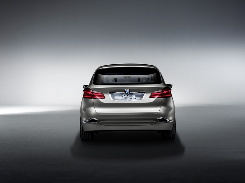 meanwhile, the rear section of the bmw concept active tourer is characterised by athletic elegance. marked, horizontal body lines define the rear view of this compact bmw. the large rear light clusters running well into the side panel highlight the broad wheel arches, visually underscoring the vehicle's solid road-holding. the large tailgate with low load sill and wide opening provides convenient access to the luggage compartment.