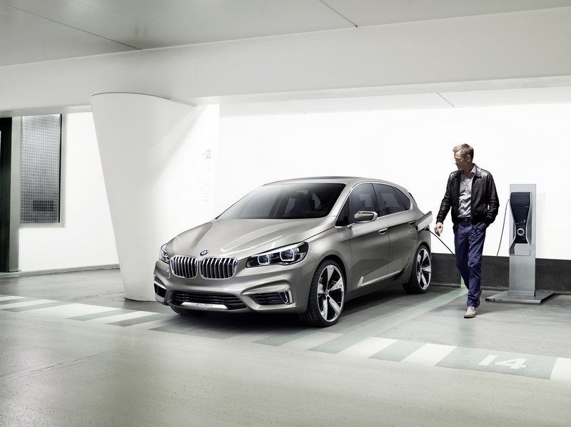 the lithium-ion battery of the bmw concept active tourer can be charged at any 220 volt household power socket. power can be drawn from both axes of the bmw concept active tourer and fed into the lithium-ion battery so as to enhance the efficiency of the plug-in hybrid. while the electric motor automatically recuperates maximum energy at the rear axle during deceleration, a high-volt generator connected to the combustion engine additionally charges the battery whenever needed.