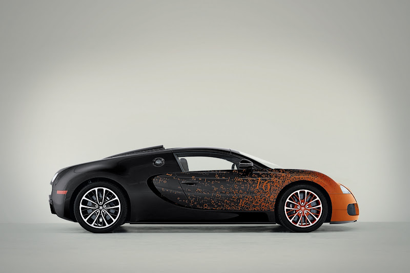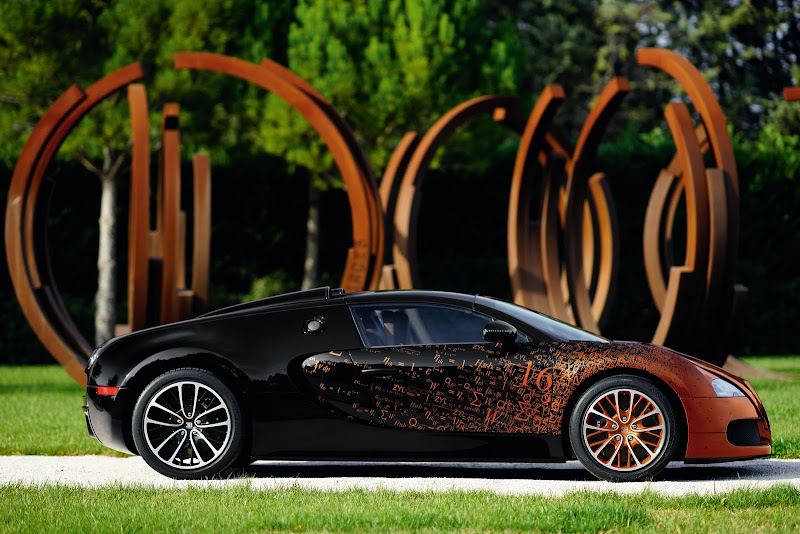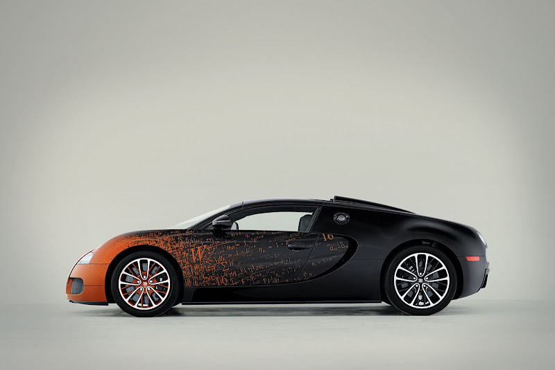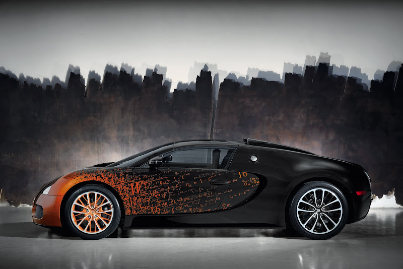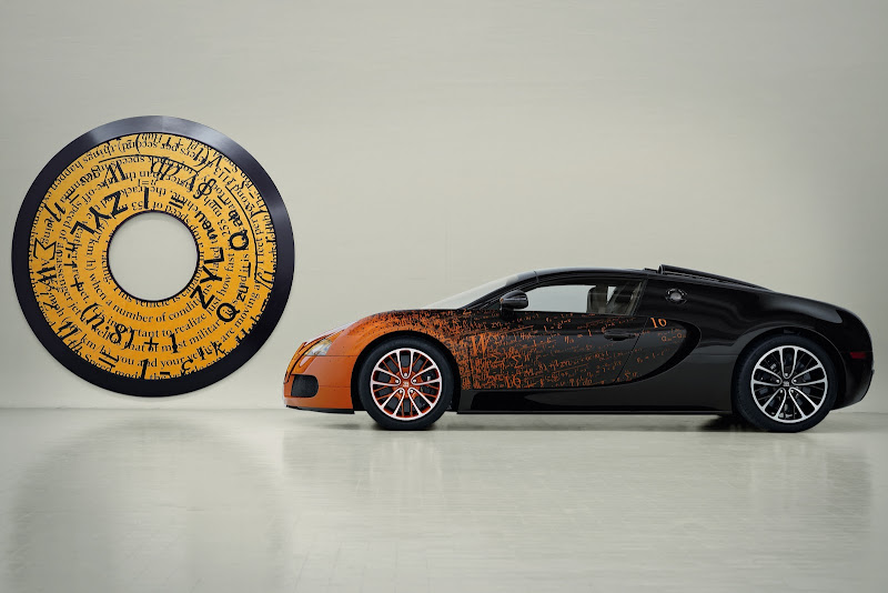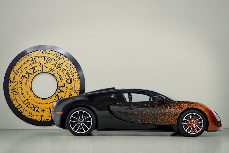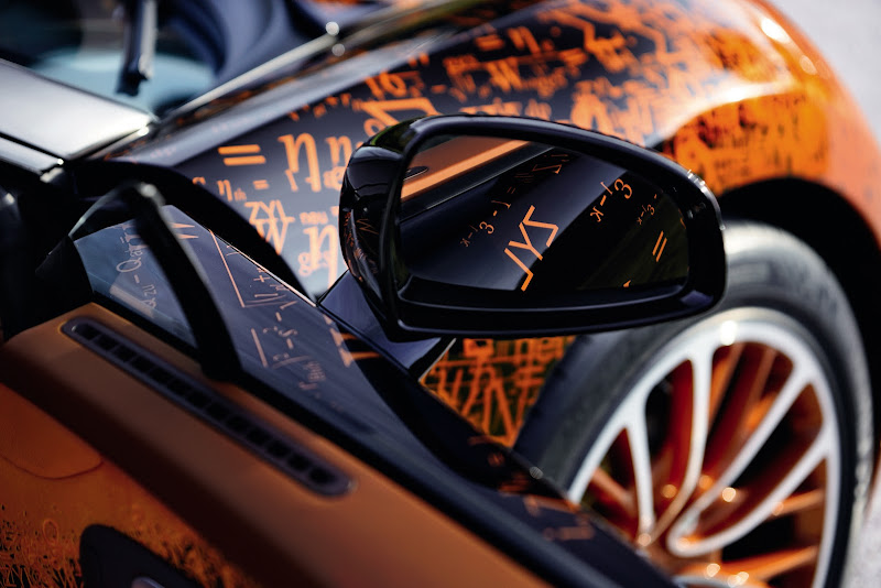 bernar venet remarks, “a bugatti is already a work of art in itself, one that transports both its beholder and its driver into new dimensions of reality. i realized how i could translate my passion for mathematical equations and scientific treatises into three-dimensional form. my works are usually self-referential. so i found the idea of translating the equations of the bugatti engineers onto the bodywork of the car very appealing. it was, so to speak, a logical conclusion and a new challenge in terms of the specific form of collaboration and implementation. to me, the result is also exceptional when measured by artistic standards and bestows the object with a mythical character.”
