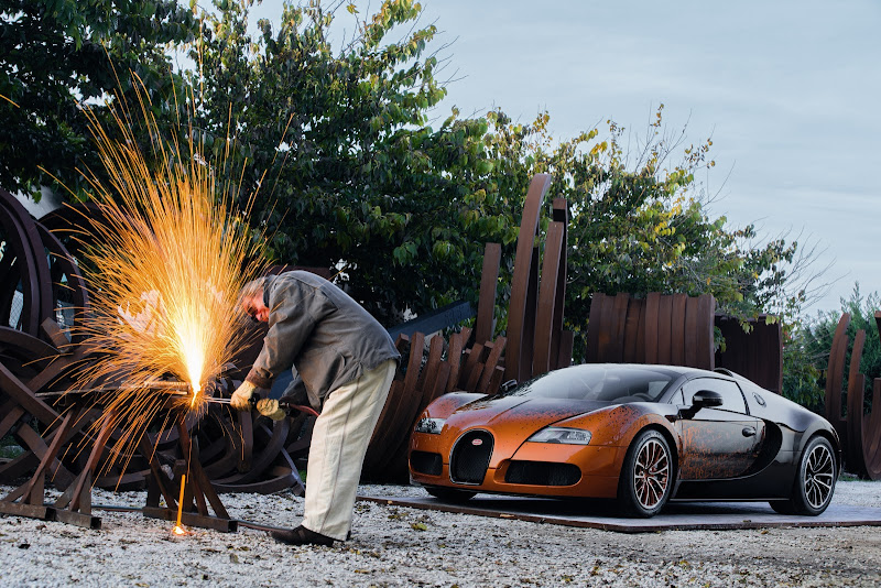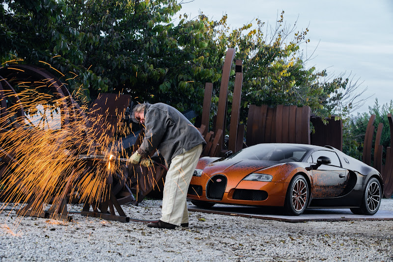 molsheim, france/miami – december 3, 2012. french artist bernar venet has been invited by bugatti, legendary supercar-maker, to create a work of art that combines the artist’s vision and passions with bugatti’s celebrated grand sport. through a congenial synthesis of artistic concept and technical possibilities, venet has created an object that integrates the symbol of speed with a fascinating, painterly exterior and an interior that alludes to haute couture. this one-of-a-kind sculptural work will be on view at the rubell family collection in miami during art basel miami beach.