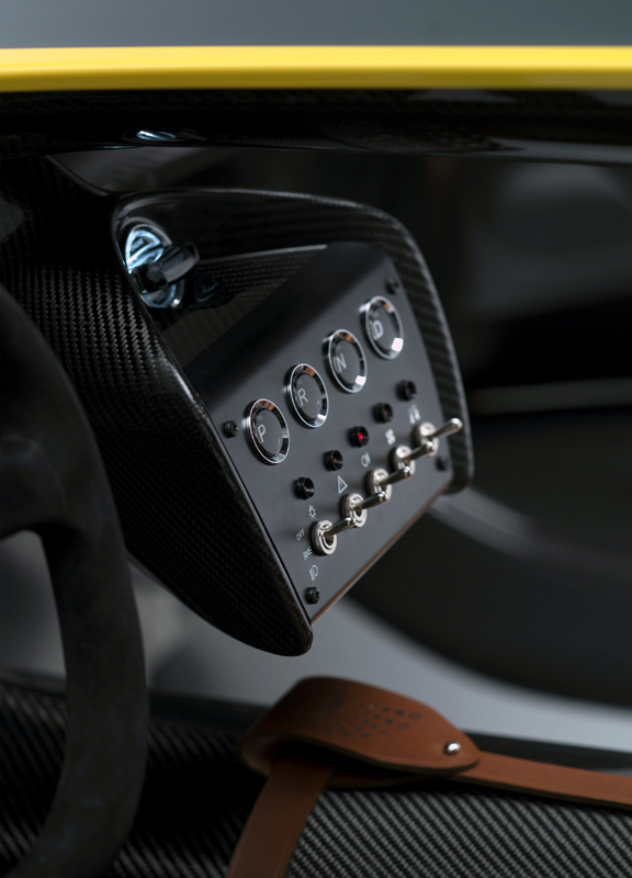 with a body and interior crafted from carbon fibre, tooled and provided by low volume specialists multimatic, the cc100 utilises the latest generation am11 naturally aspirated v12 gasoline engine mated to a six-speed hydraulically actuated automated sequential manual transmission. controlled via steering column-mounted paddle shifts the lightweight ‘box delivers truly sporting changes perfectly suited to the speedster’s track-focused nature.