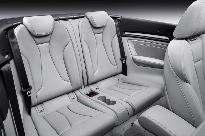 the new a3 cabriolet has a soft cloth top that is stretched over a lightweight kinematic mechanism made of magnesium-steel, and it complements the car's design perfectly. at the press of a button, the top opens or closes electro-hydraulically in less than 18 seconds, even while driving up to 50 km/h (31.07 mph). in the opened state, the top – folded into three layers – rests in a tray that barely affects luggage capacity, which is 287 liters (10.14 cubic ft).