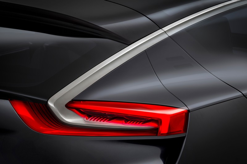 the sculptural surfaces of the 4.69 metre-long, four seat monza concept are modelled after ocean waves lapping on the shore. these flowing surfaces give a look of lightness, dramatically underlined by the side-sills that taper off in front of the rear wheel arches. this unique styling element is inspired by the lean physique and slim waist of a greyhound dog, running as if on tip-toes with powerful elegance. the design of the monza concept’s body sides enables easy entry and egress for front and rear-seat passengers, while underscoring the prominent, sporty rear wheel arches, which share the same width as those at the front.