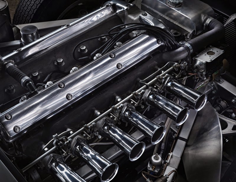 it was this engine that had powered the c- and d-types to five le mans victories in the 1950s, and the unit developed for the lightweight e-type is based on the 3,868cc (236 cu in) engine which, in the d-type, had won le mans in 1957. a similar big valve 'wide angle' cylinder head is used, but in place of the d-type's cast iron block, jaguar introduced an aluminium block for the lightweight e-type which substantially reduced the amount of weight over the front wheels. this also features in the present-day car, with pressed-in steel liners.