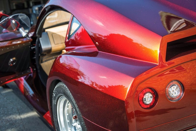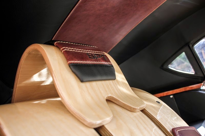 at the heart of the rigid steel chassis is a naturally aspirated 3.7 litre ford v6 engine, as used in the morgan v6 roadster. a new suspension setup, a bespoke engine management system and custom sports exhaust enhance the driving dynamics of the sp1. the wooden frame of the coach-built body is constructed using ash wood, combined with african bubinga red hardwood chosen by the client to represent his business life spent on that continent.
