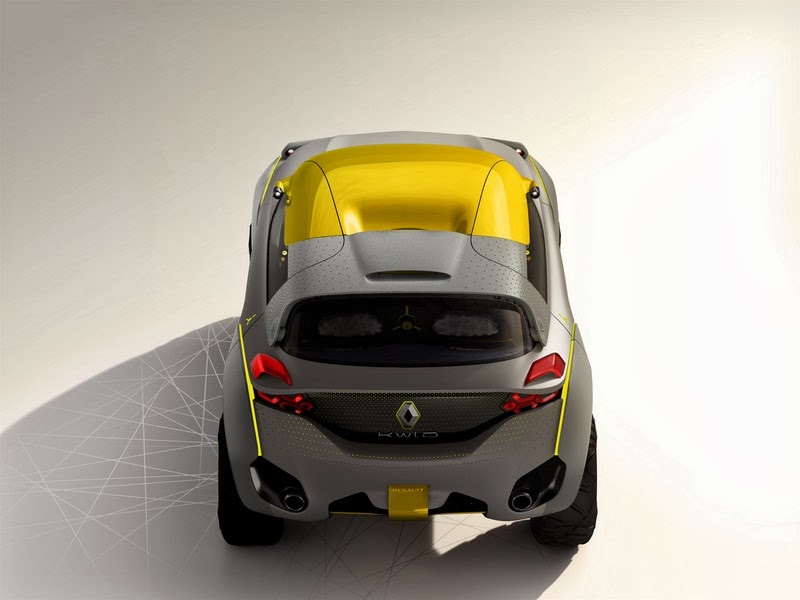 the kwid concept was designed with inputs from renault design india and is covered by the ‘explore’ petal of renault’s lifecycle-based design strategy. the vehicle’s exciting proportions and dimensions as well as very short overhangs give the impression of a bouncing vehicle, while its oversized wheels protrude past the fenders and make the kwid concept look like a buggy car.