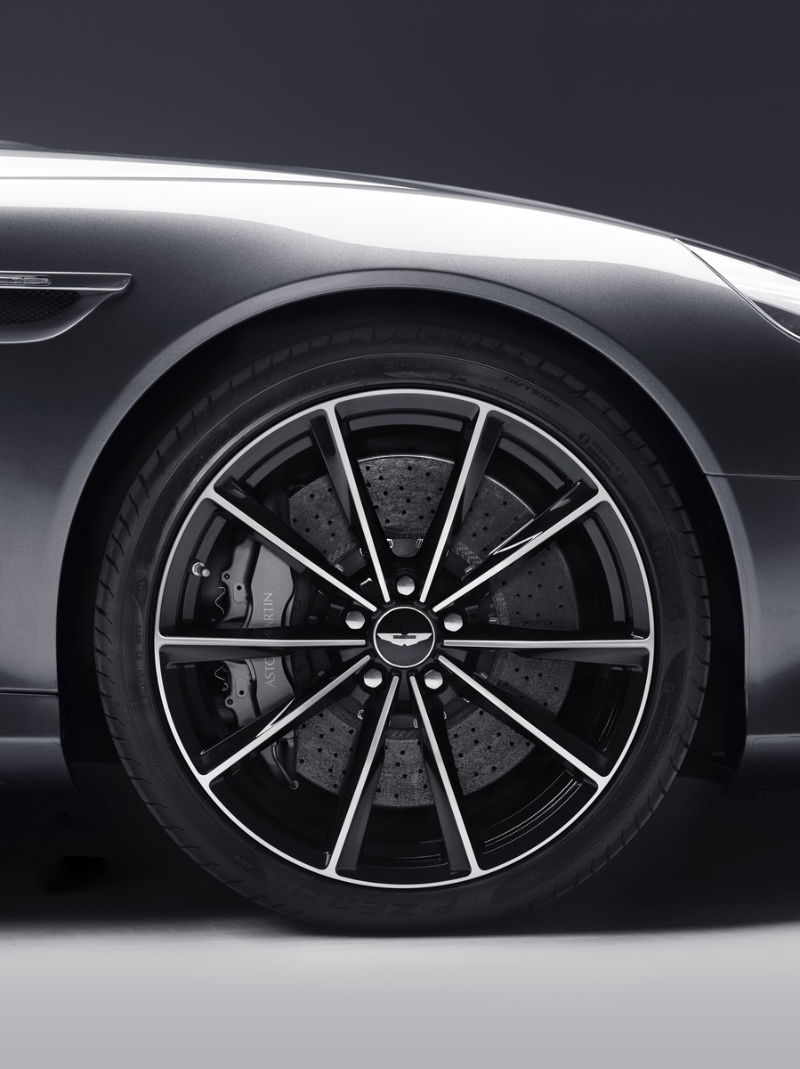 aside from the subtle gt badges, this new db9 is identified by black painted splitter and diffuser, revised headlight and tail light treatments and new ten-spoke 20-inch alloy wheels. black anodised brake calipers and a gt engraving on the aluminium fuel filler cap further distinguish the new model.